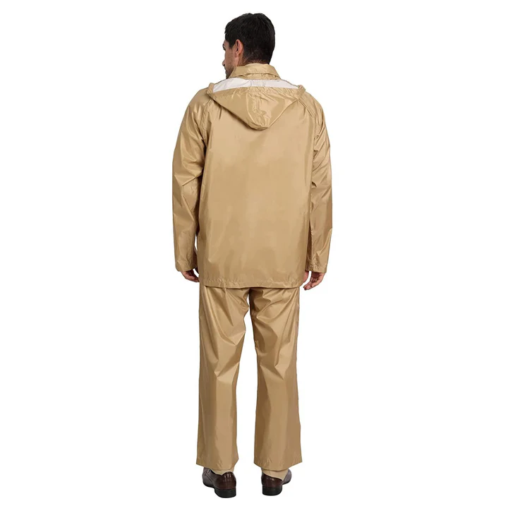 Banahara Khaki Rain Suit is a set of jacket and pants. The jacket includes an adjustable hood to protect your head from rain and the attached cord lock keeps the hood stable. Additionally, the elastic cuffs ensure that the water does not come inside the suit. The jacket’s full front zipper with Velcro helps in easy on/off and keeps the moisture out. The rain suit pants feature an elastic waist and straight leg design which allows the wearer to experience the most comfortable fit possible. Banahara Khaki Rain Suit comes in comfortable sizes so it can be quickly slip over everyday clothing. The suit is perfect for hiking, camping, biking, and any other outdoor activity on a rainy day.